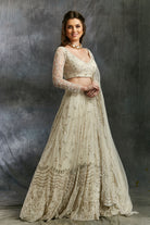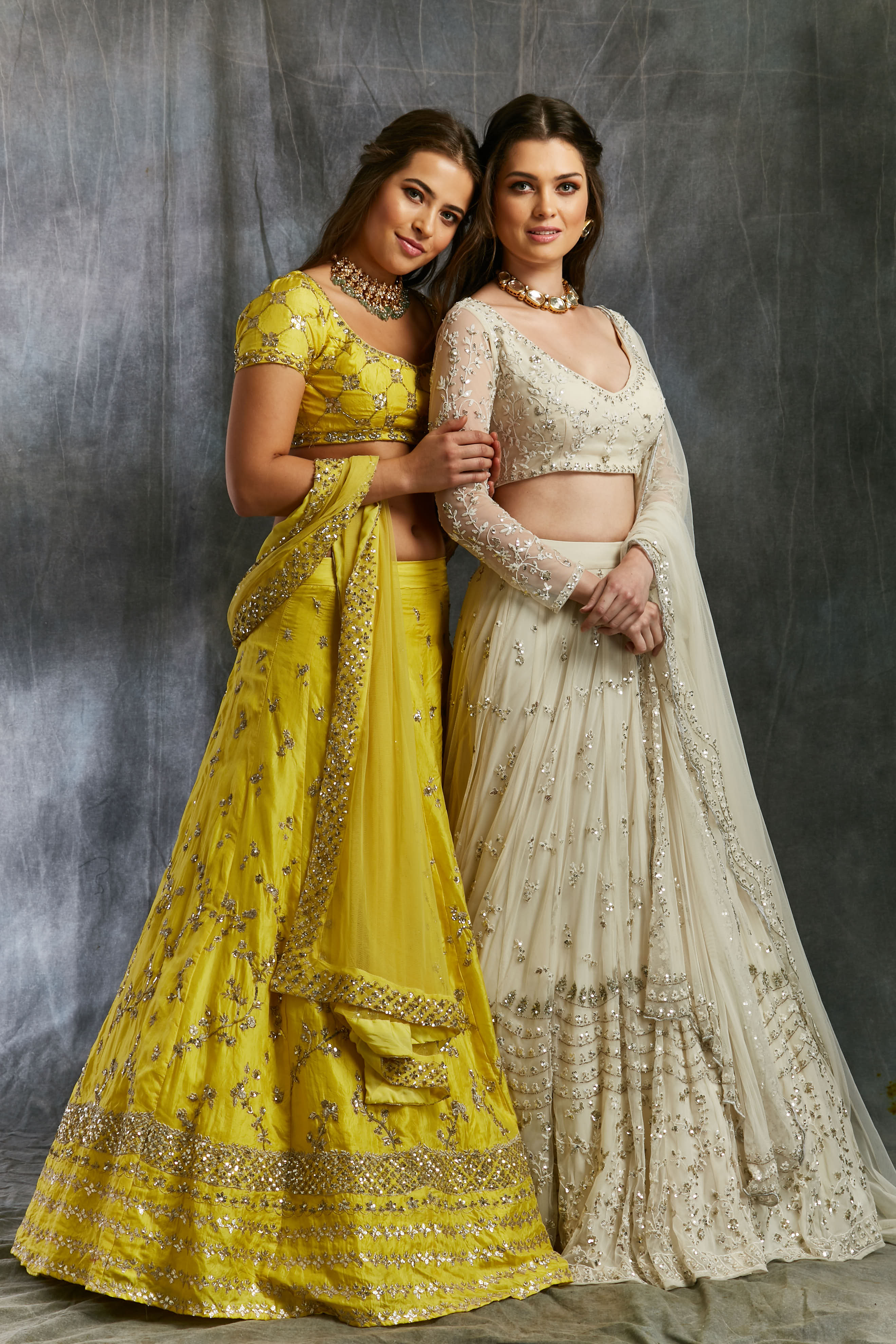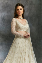 Featuring a WHITE AND SILVER SEQUIN LEHENGA SET IN NET.
