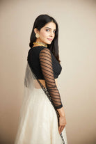 Featuring a White & Black Threadwork Lehenga Set in Raw silk.