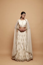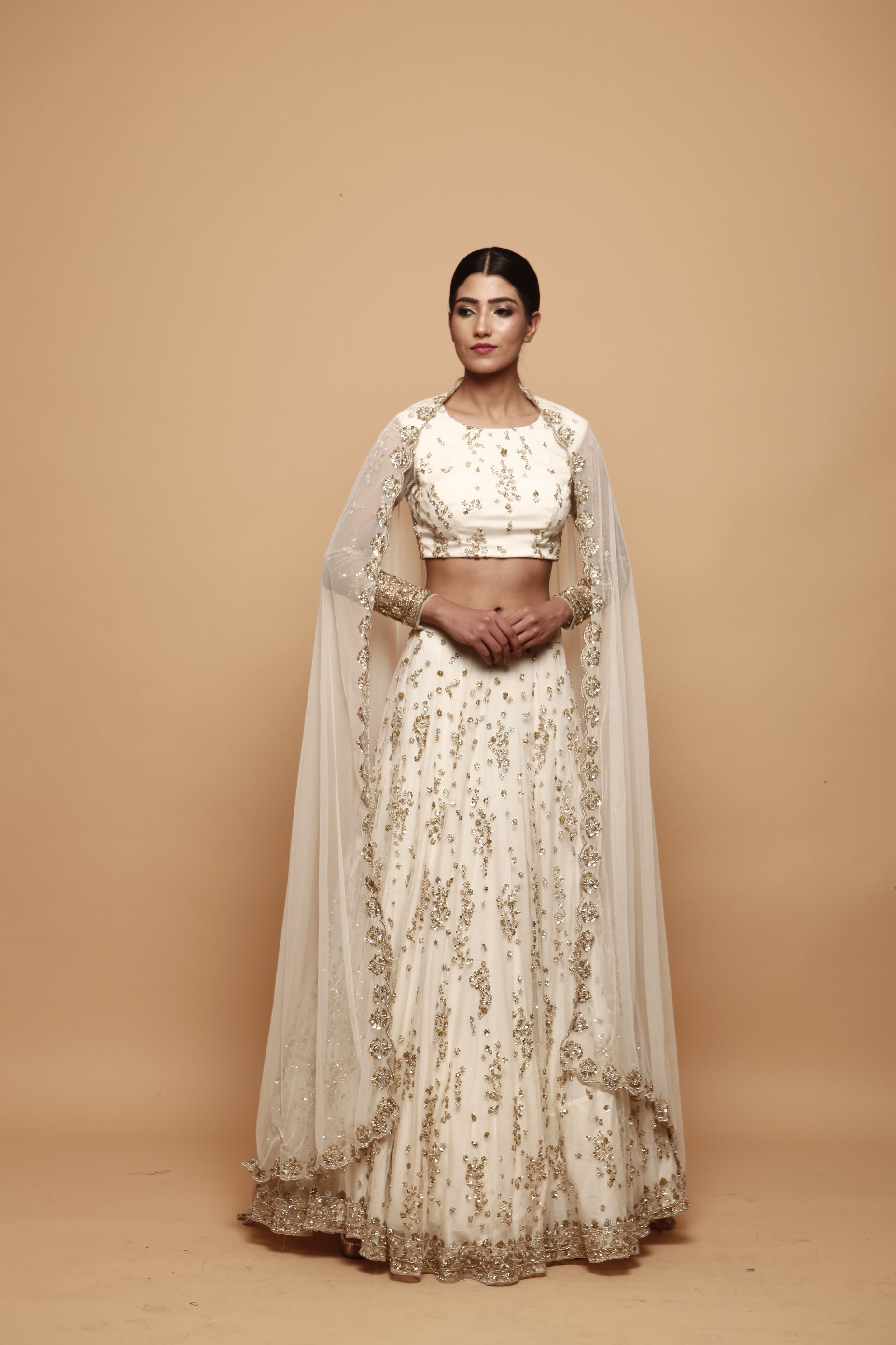 Featuring a WHITE CLUSTER LEHENGA IN NET.