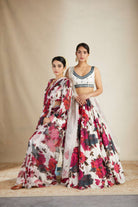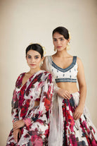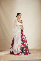 Featuring a White & Red Floral With White Blouse Set in Chanderi.