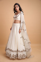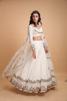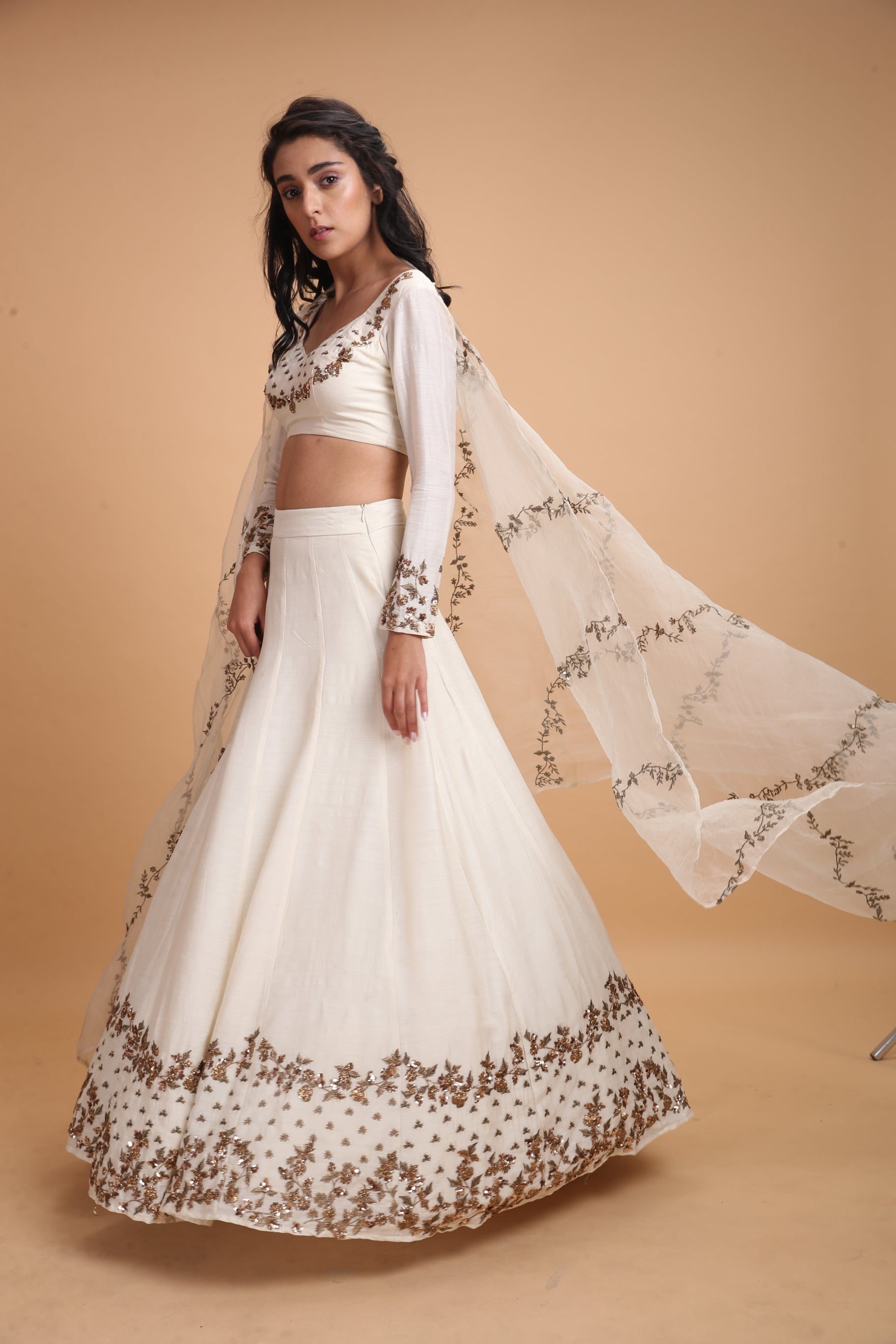 Featuring a WHITE SILK LEHENGA WITH DARK GOLD WORK IN CHANDERI.