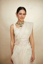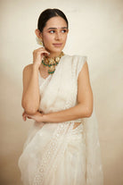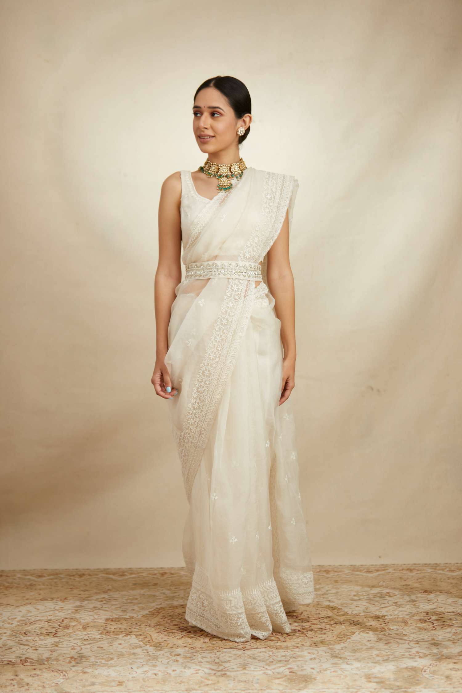 Featuring a White Organza Threadwork Saree Set in Organza.