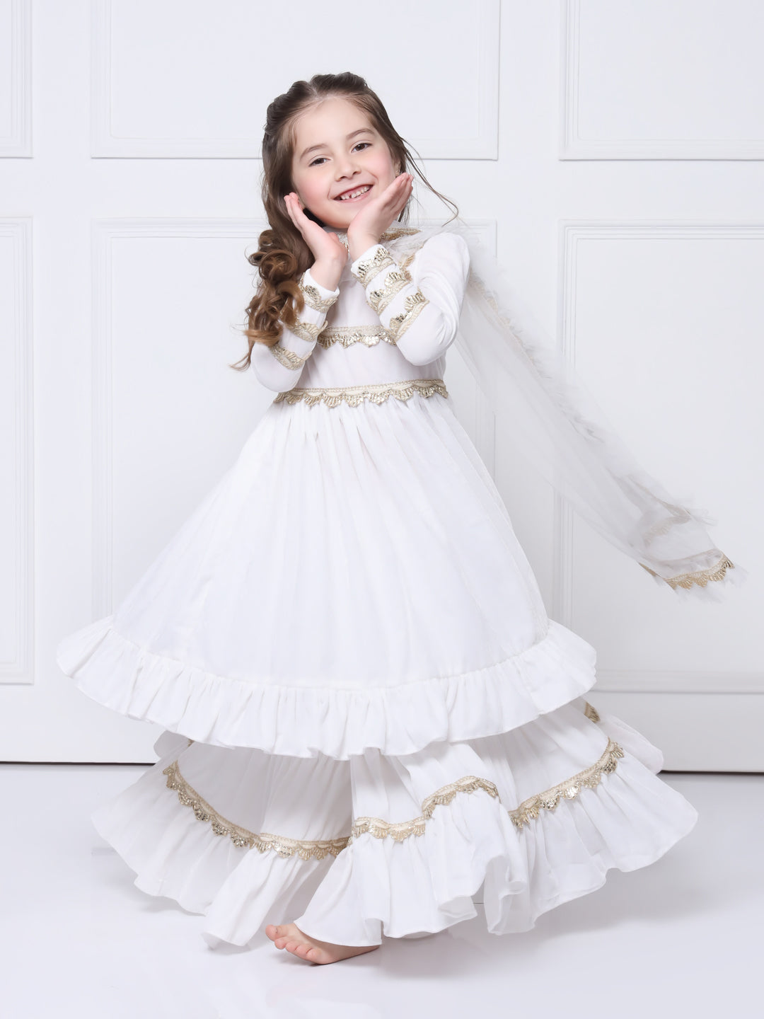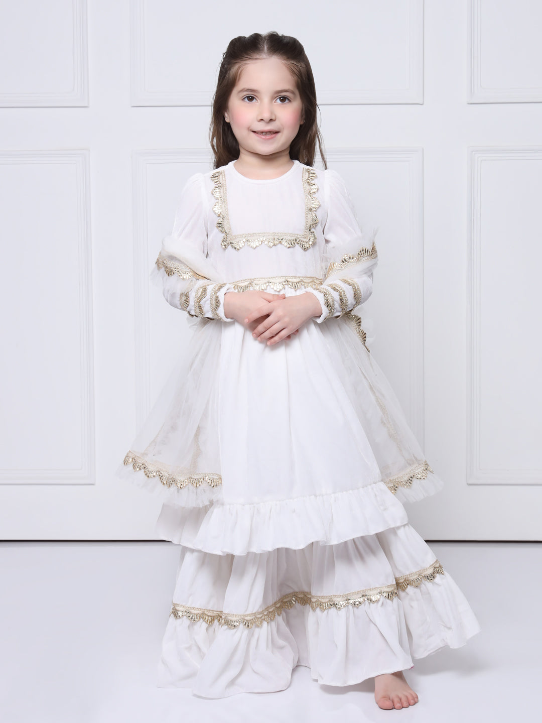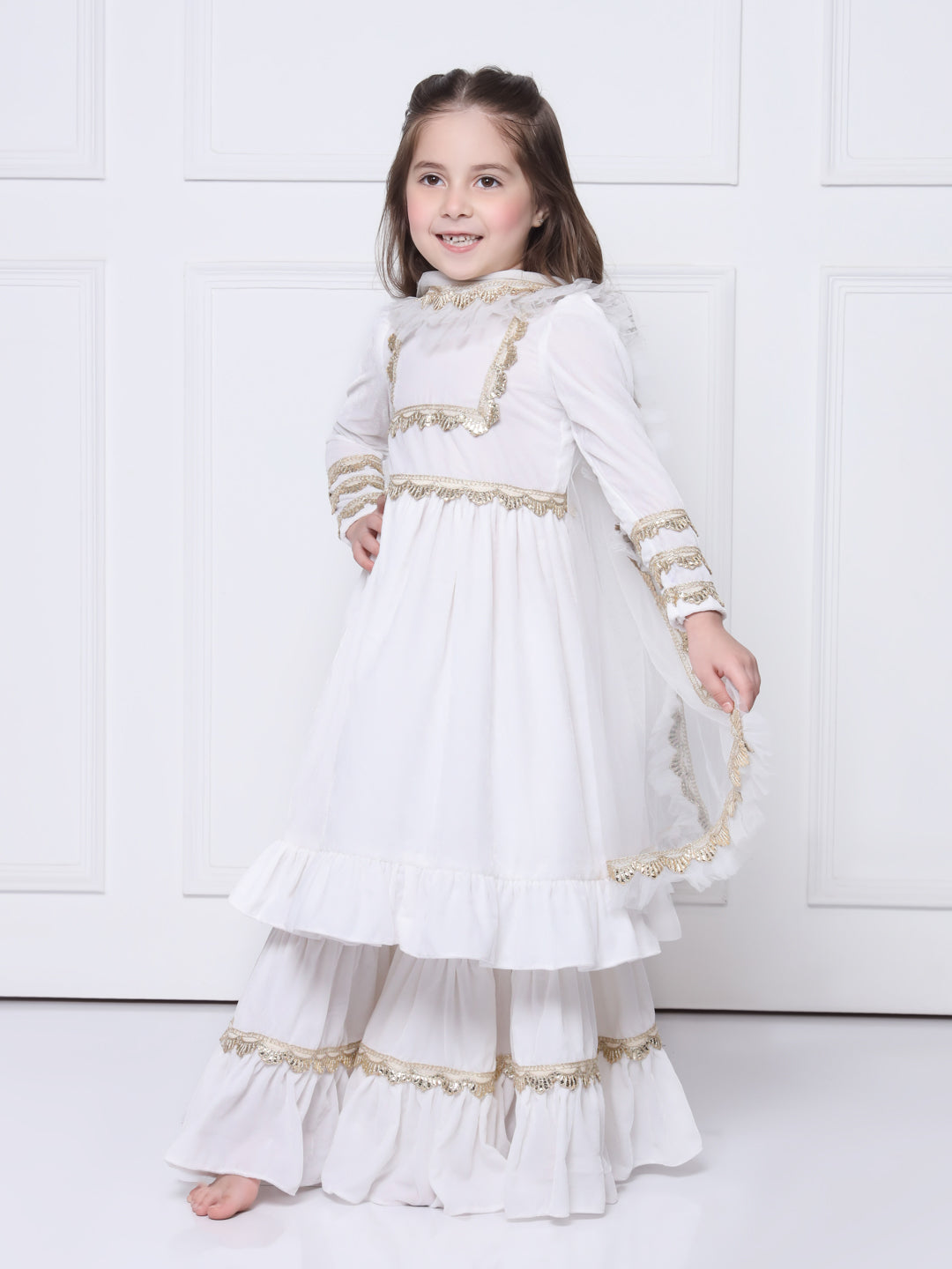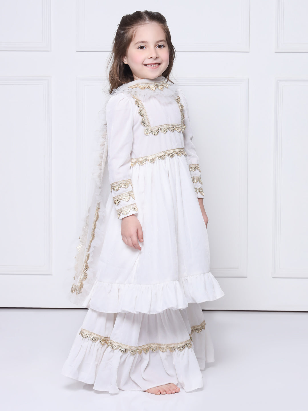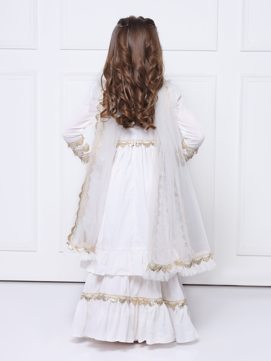 ● Soft net dupatta with frills and gota.