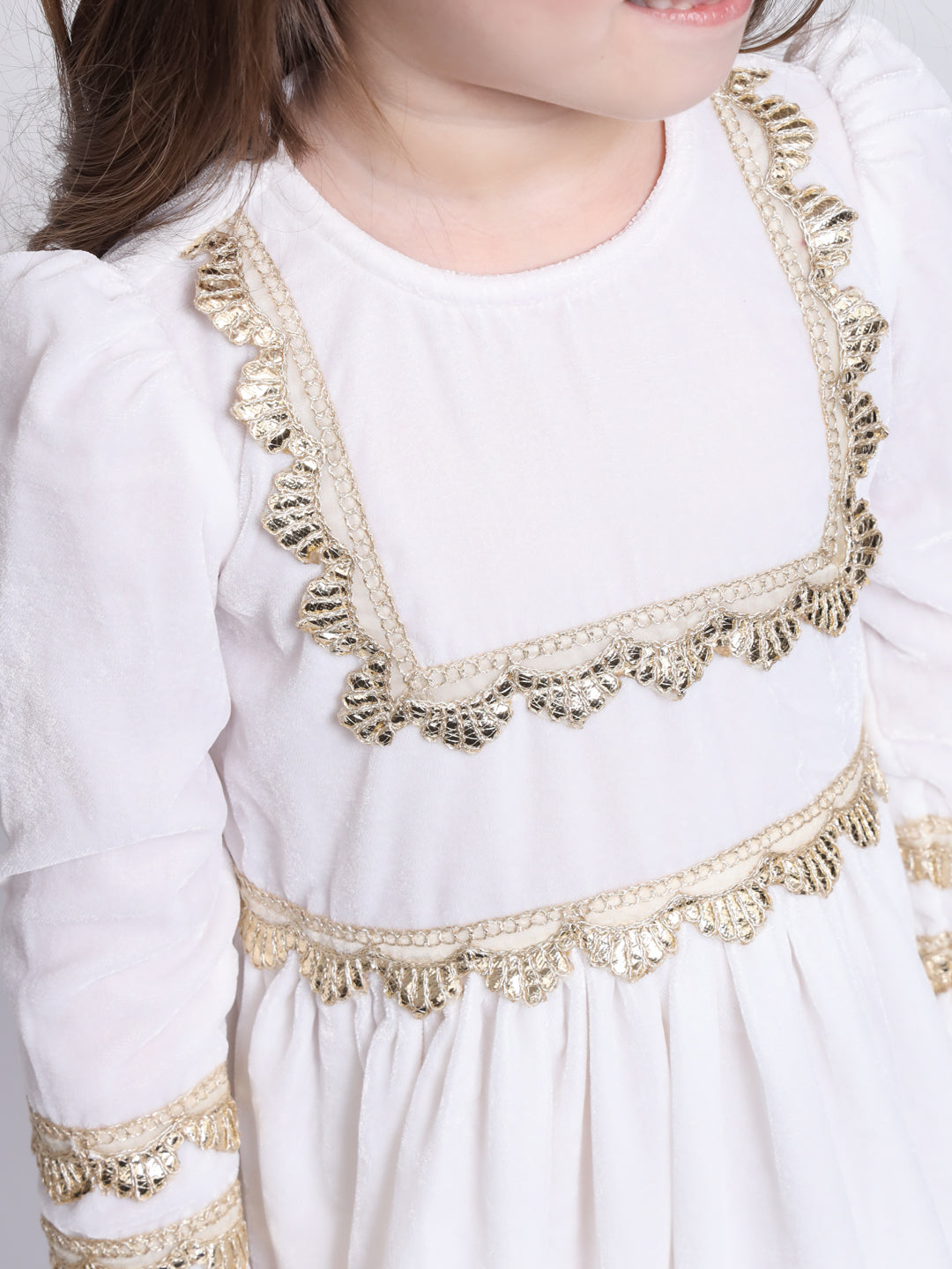 ● Made in white velvet, embellished with beautiful gold gota.