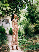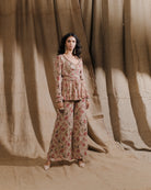Women Beige Floral Printed Kurti With Straight Pant