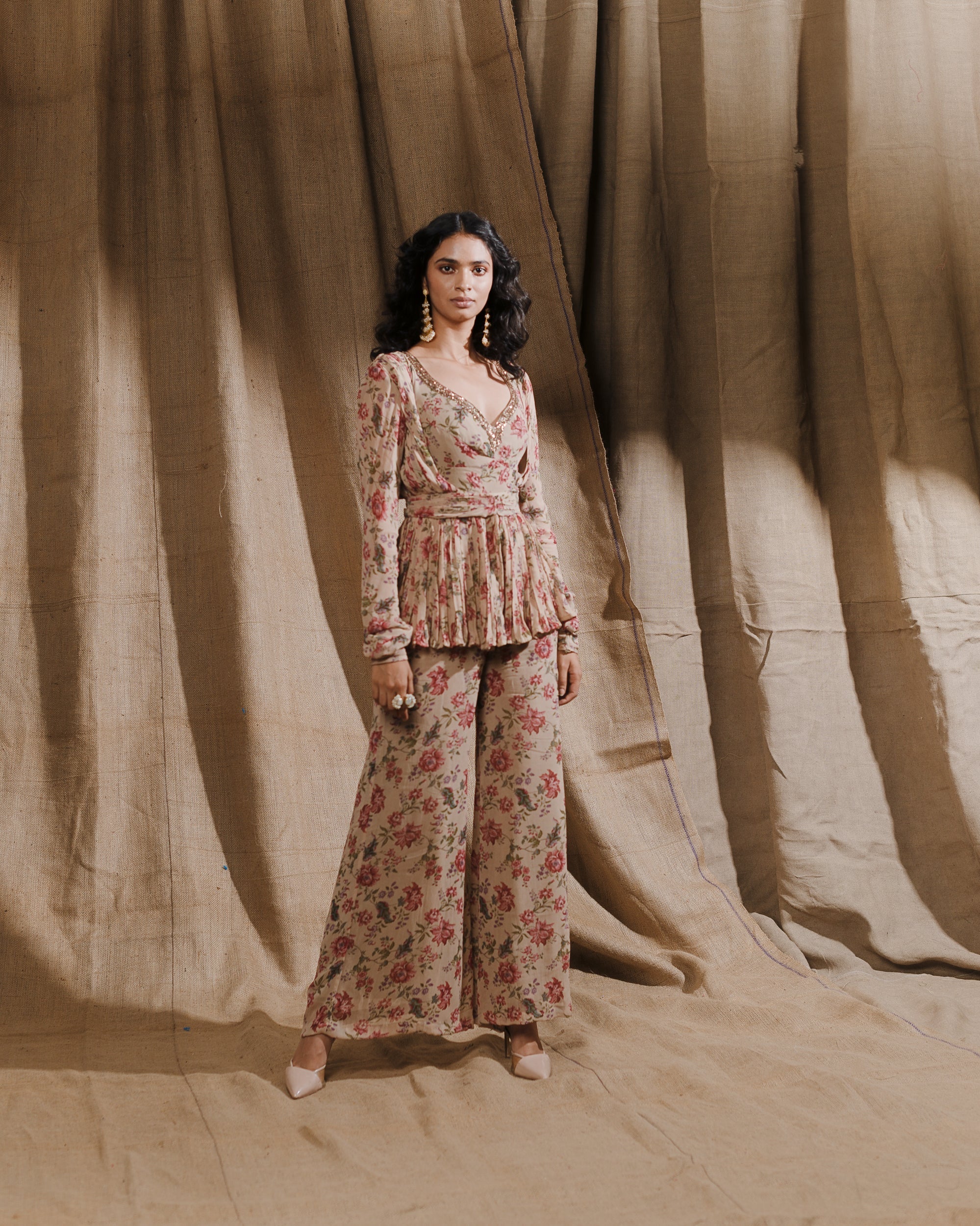 Featuring a BEIGE FLORAL PRINTED KURTI WITH STRAIGHT PANT IN GEORGETTE.