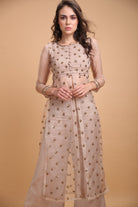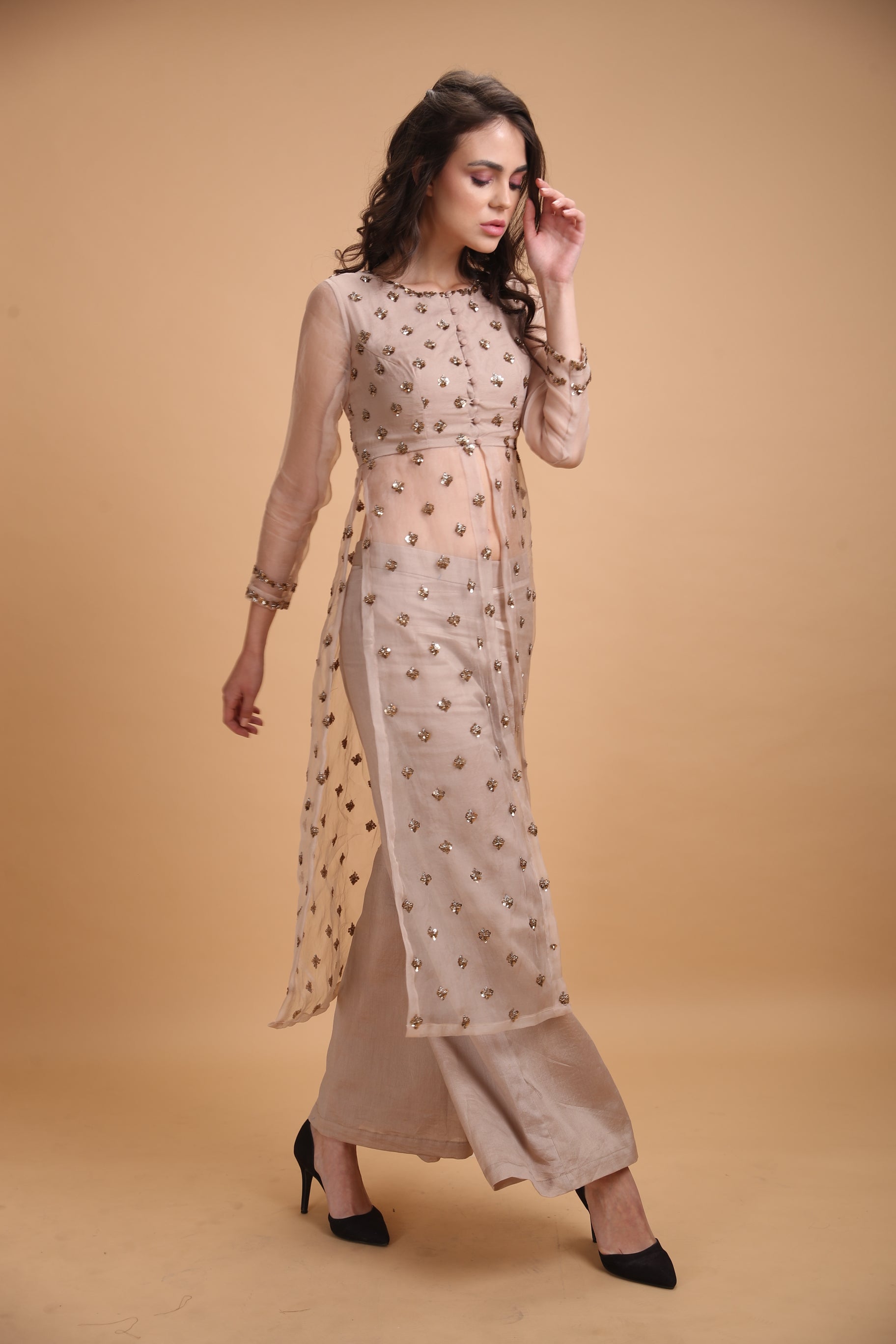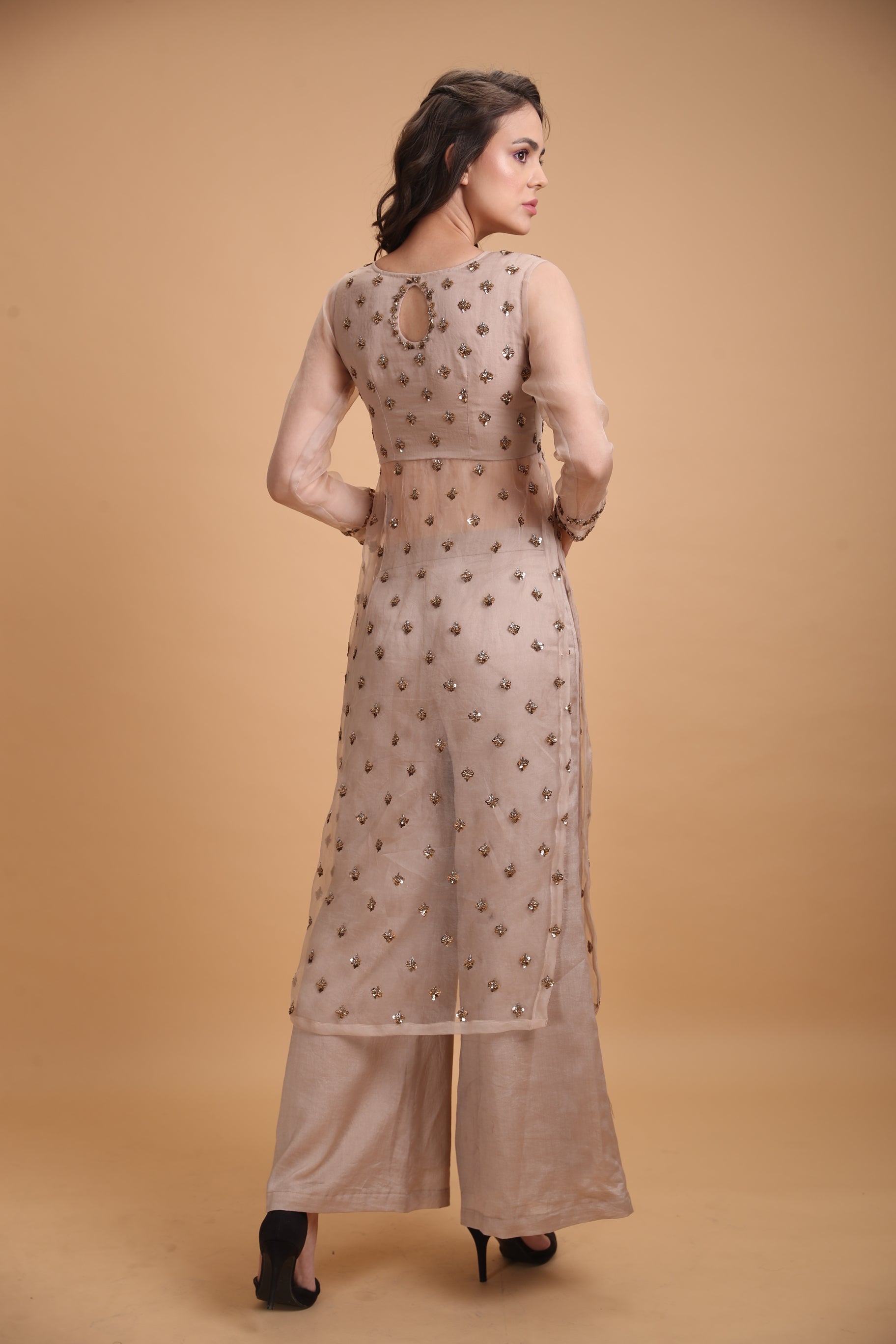 Featuring a LIGHT BROWN JACKET WITH PANTS In Organza.