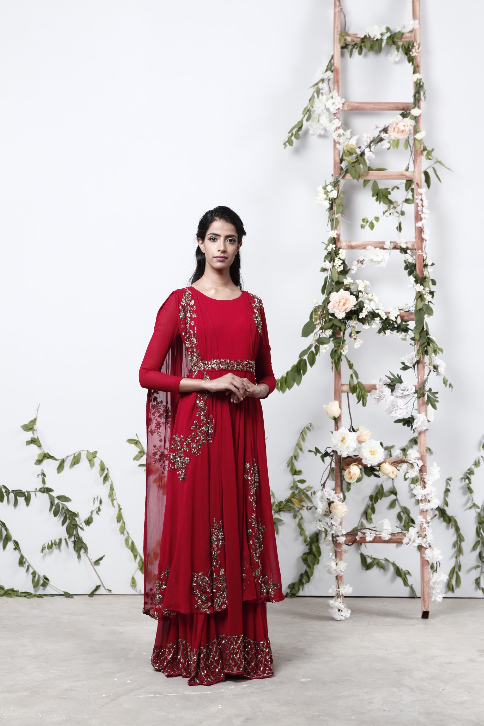 Featuring a RED JUMPSUIT WITH BELT In GEORGETTE.