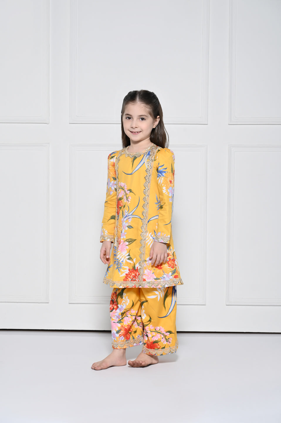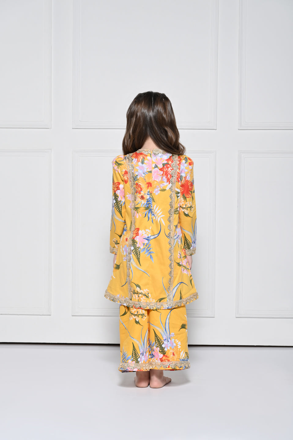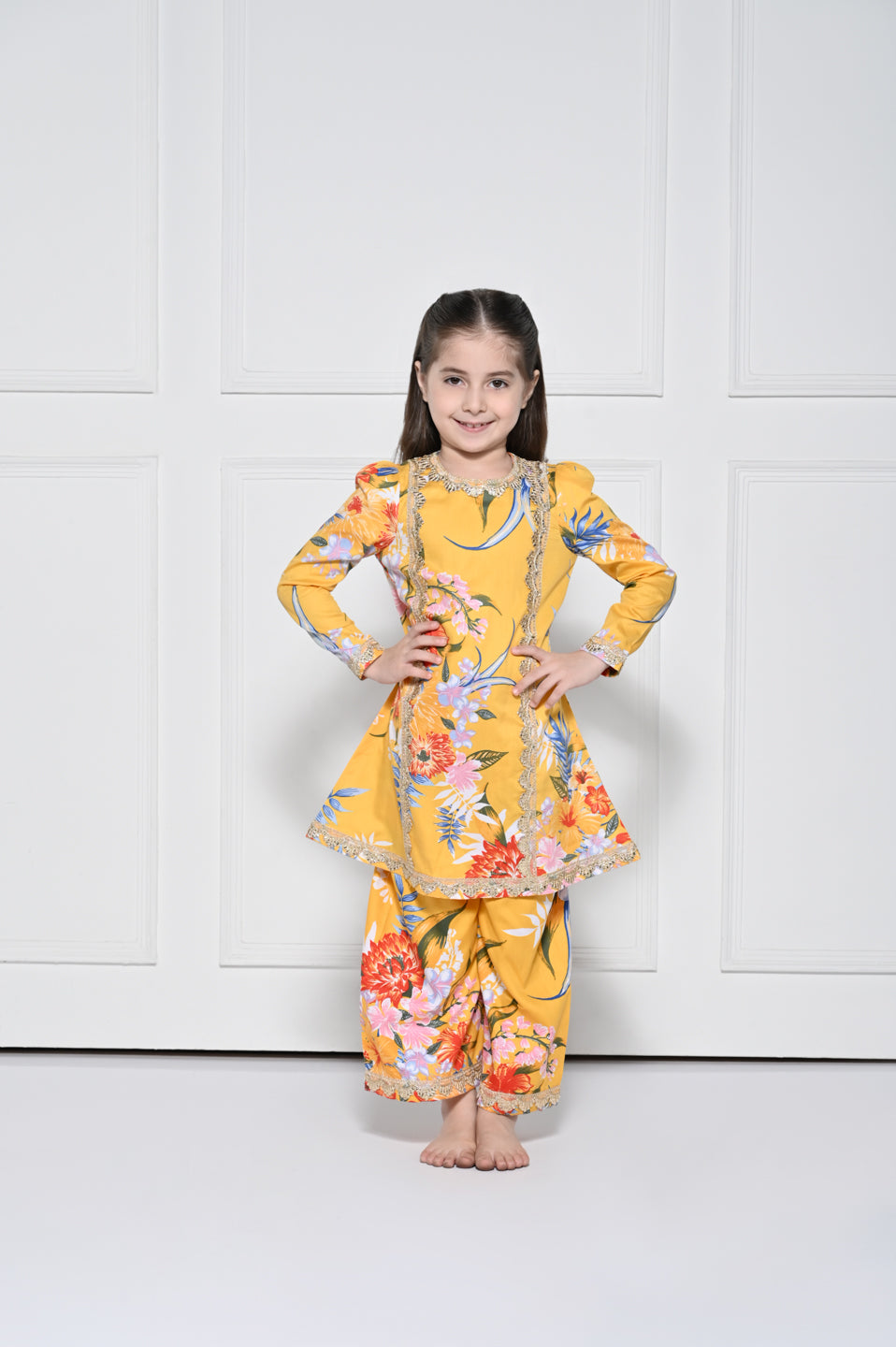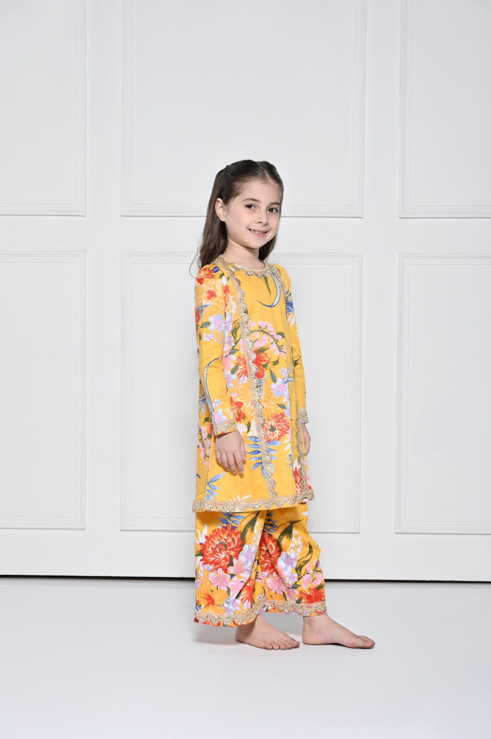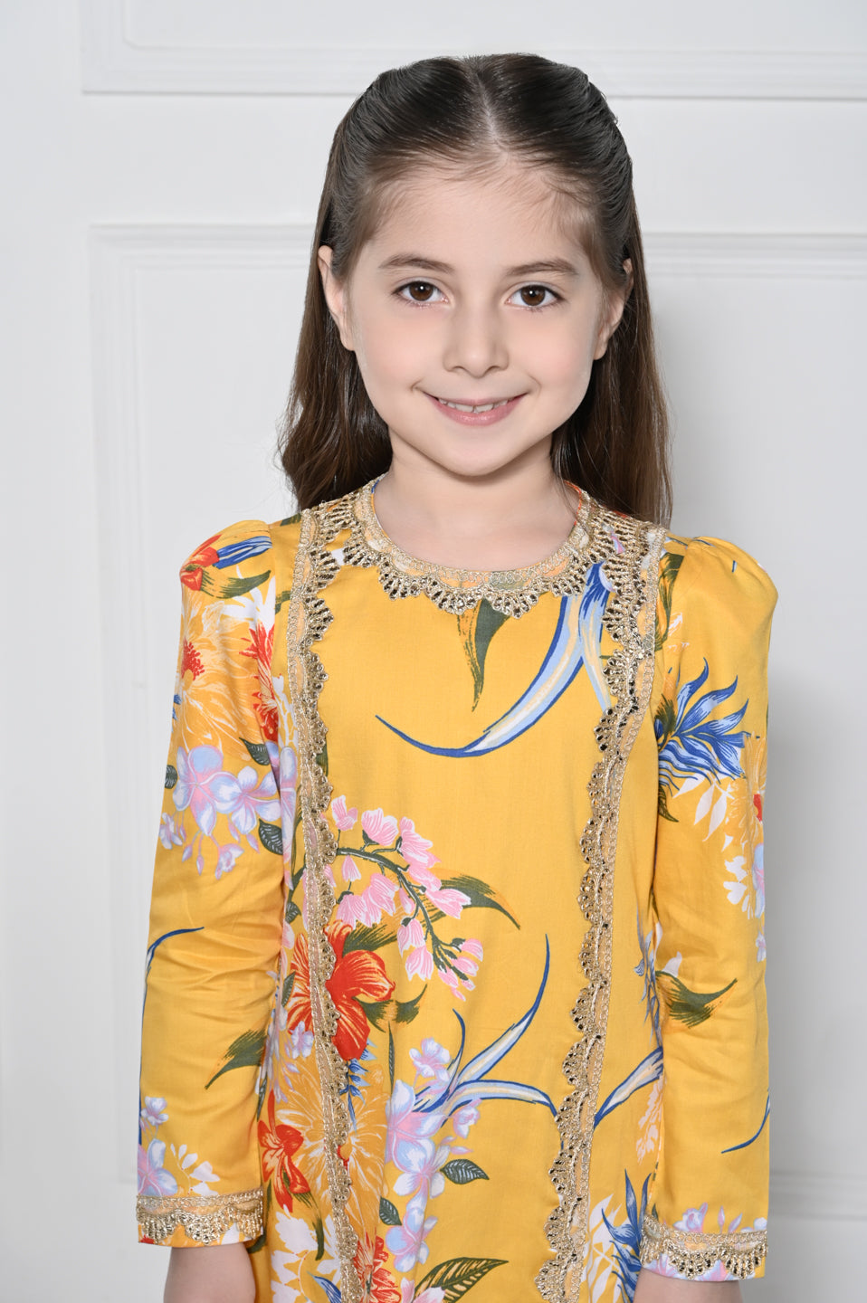 Yellow Floral - A Yellow Rayon Suit with a Floral Print for girls
