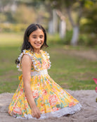- YELLOW COLOUR WITH A VINTAGE FLORAL PATTERN