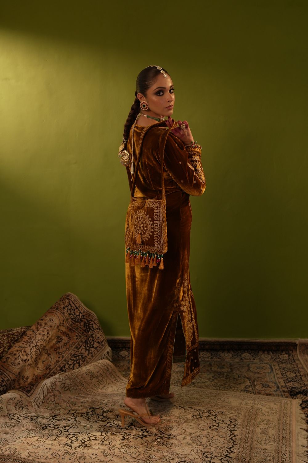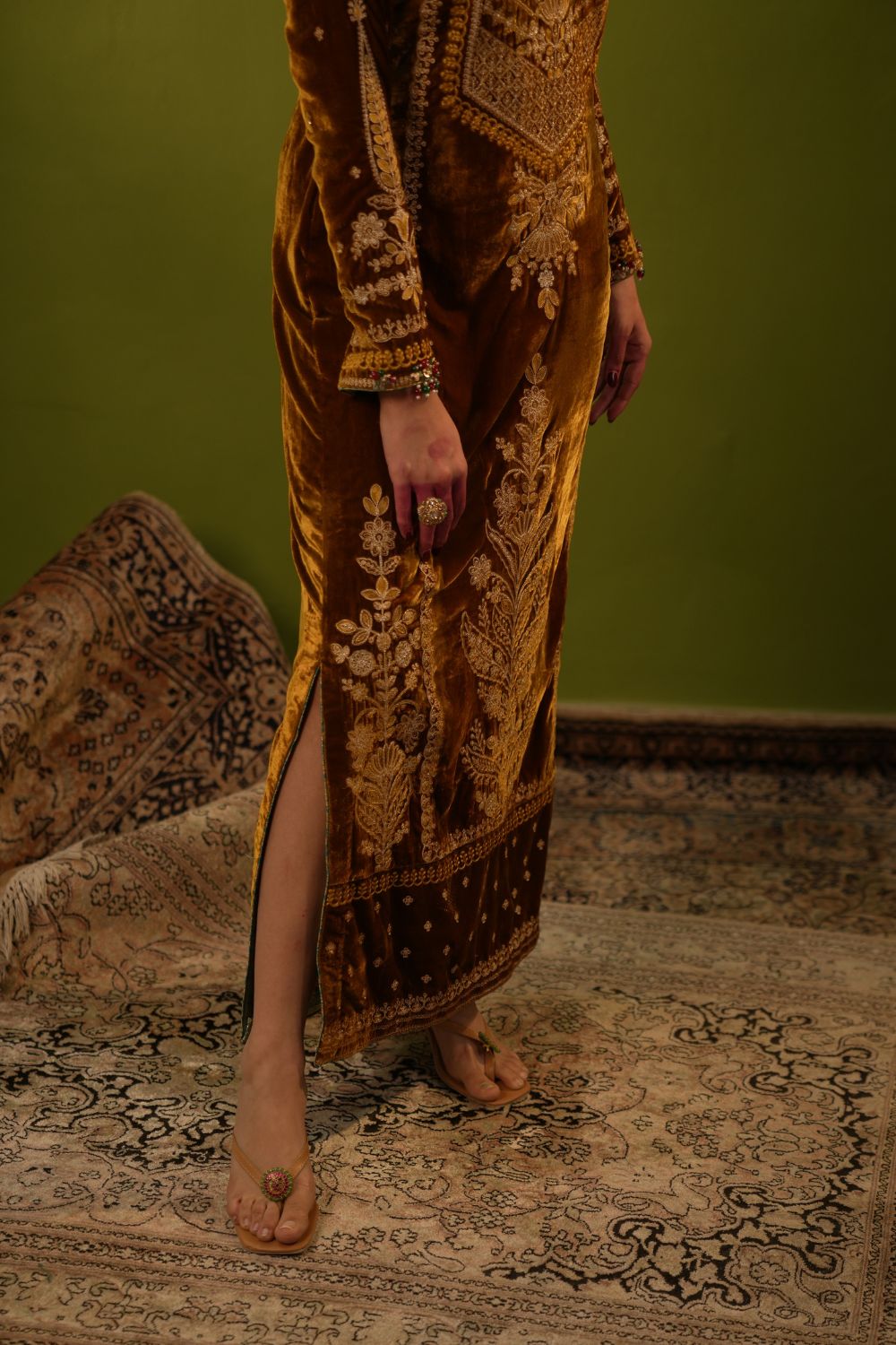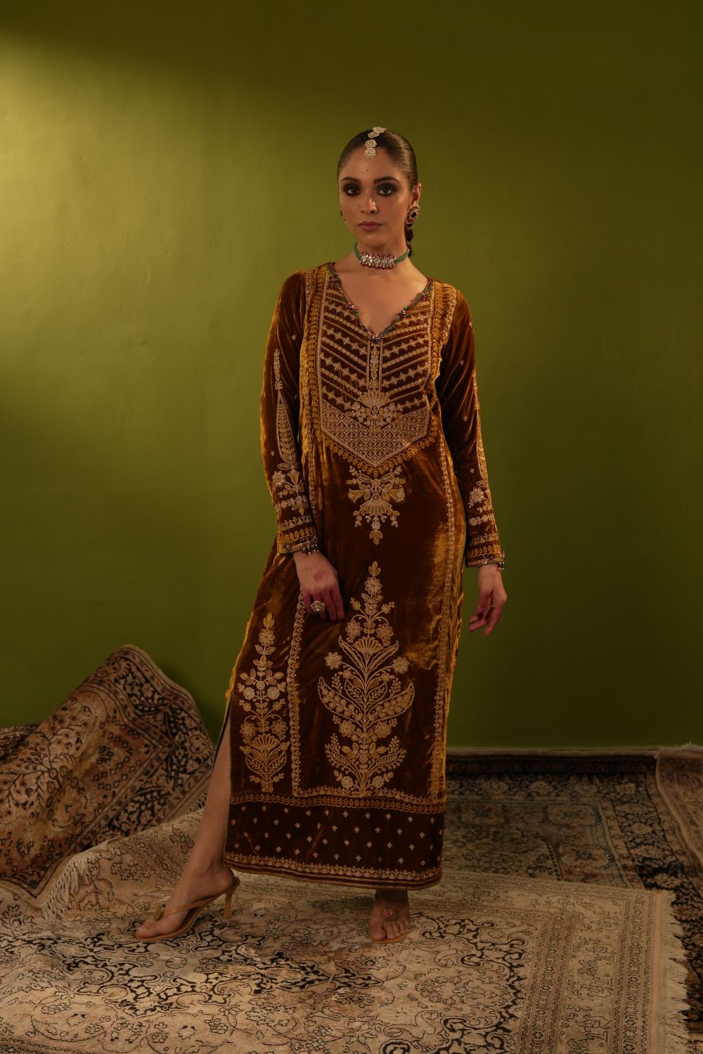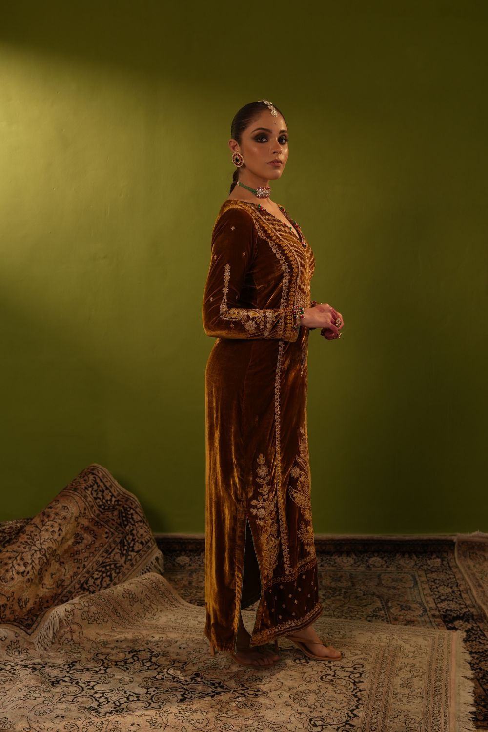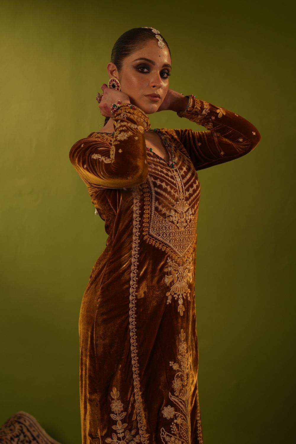 Yellow Velvet Kaftan Set