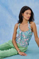 On The Model: XS, 5 Feet 7 Inches Neckline - Halter, Neck depth- 9 inches Blouse Length- 20.25 inches Pant Length - 44 inches